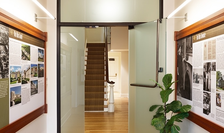 Robinson House’s Visitor Center now occupies half of the first floor, while VMFA’s Human Resources team moved into office and training space on the second and third floors. Shockey also added a gallery on the first floor which features an exhibition about the complex story of the site, from the 17th century to the present.