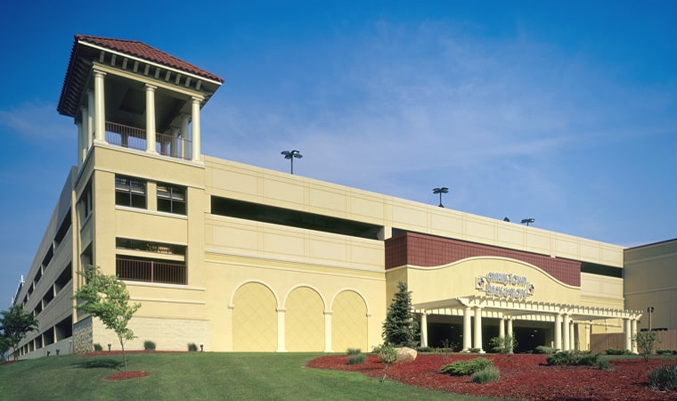 Built in phases, original construction for Hollywood Casino (formerly Charles Town Races and Slots) entailed a network of elaborate theming and finishes to accommodate 1,500 slot machines. Shockey also built a 1,500-space parking structure, food court, stage/entertainment areas, retail space, and a porte cochere, and renovated executive offices and service level facilities during the first phase of construction.