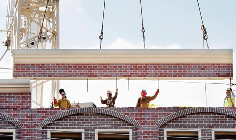 The design team was able to effectively incorporate prominent architectural features, such as brick masonry arches, limestone bases, and decorative cornices, by using precast concrete. The garage complements and blends in with surrounding historic structures.