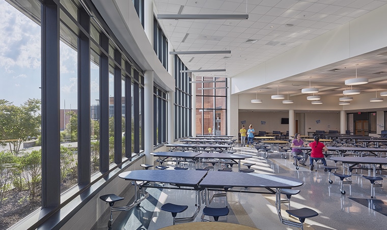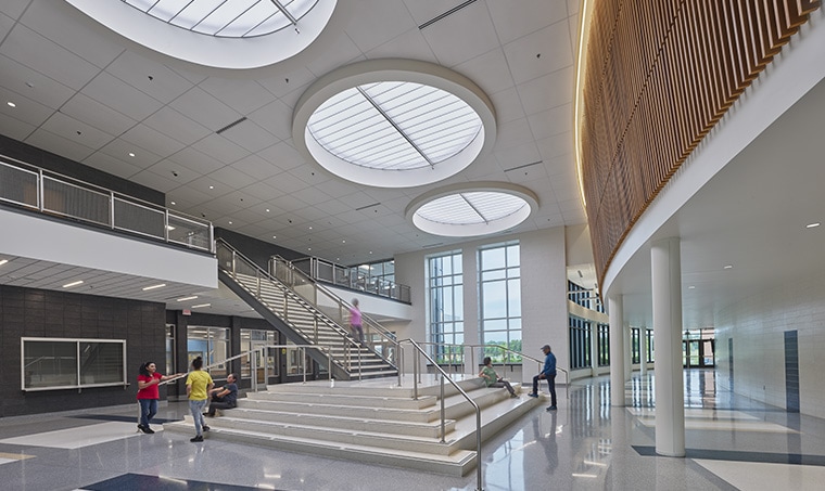Shockey recently built the newest public high school in Loudoun County in the Dulles South area. Built using LCPS’s new two-story high school design prototype, the 305,000-SF structure’s stunning design features a mix of masonry and glass, with interior courtyards and curtain wall facades to provide broad access to natural light. Sustainable systems include natural and LED lighting with daylight sensors, high-efficiency condensing water heaters, and low-flow fixtures.